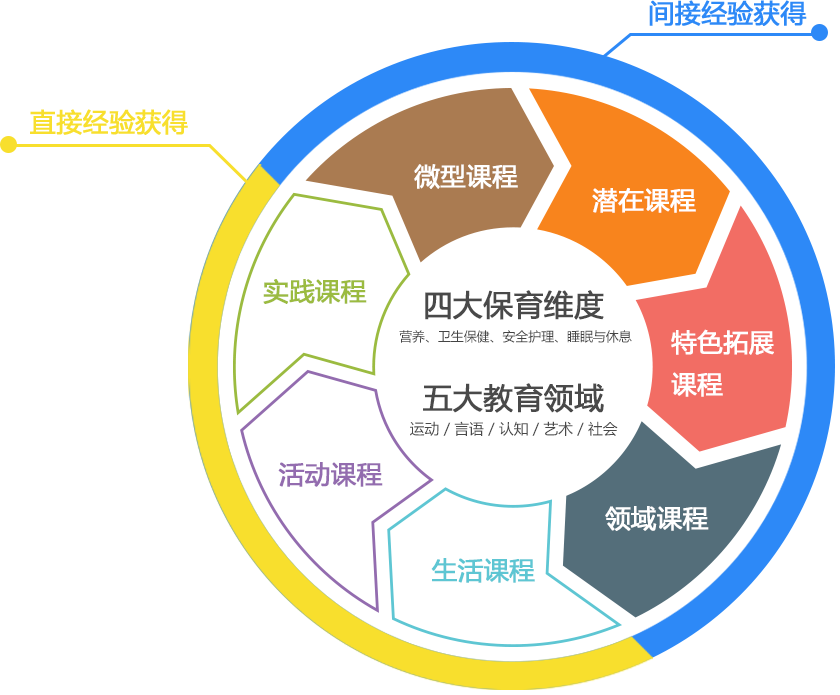 金色摇篮潜能开发婴幼园采用家园配合下的、全员参与的双层次七类课程,全天候、全过程、全方位覆盖运动、言语、认知、社会、艺术五大教育领域 和营养、卫生保健、安全护理、睡眠与休息四大保育维度。让孩子得到高质量可持续的发展,实现群体普通儿童的理想发展。